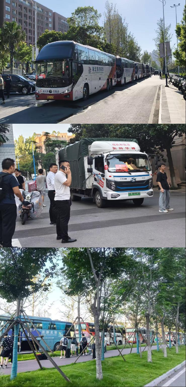 此次员工宿舍搬迁工作,公司和公司高度重视、提前谋划,成立了专项工作组,对车辆调度、行李搬运、后勤保障等各个环节进行统筹规划。在物资准备方面,为方便员工分类整理物品,特为每位员工准备3个专用行李袋;在运输保障方面,采取“人货分离”模式,共调配22辆货车负责行李运输,11辆客车专程护送员工,确保搬迁工作安全高效进行。