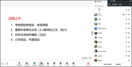 在部署下一阶段重点工作时,会议强调要紧扣目标责任书要求,狠抓任务落实,强化过程管控与责任意识。暑期将组织开展3至4次对外交流活动,积极拓展科研合作渠道,激发团队创新活力。会议还明确,要整合采油所优势资源,聚焦特色科研方向,统筹编制高质量对外宣传材料,系统展示研究所科研成果与合作潜力。同时,将同步推进三年发展规划和2025年度工作计划的制定,进一步提升战略谋划水平与执行效能。