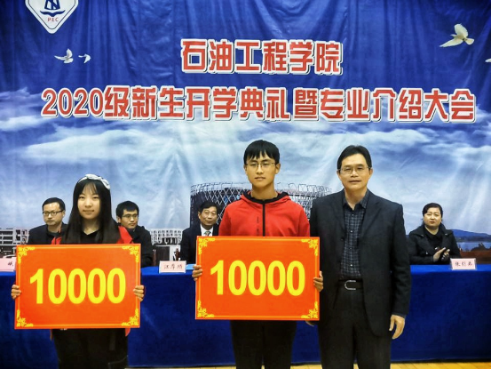 廖锐全教授和赵林教授分别为顾正奖学金及研究生优质生源奖学金获得者颁奖。其中顾正奖学金是由员工顾正先生设立的奖学金,专门用于奖励高考成绩优秀的长大新生,今年油工公司共有两名同学获此殊荣,分别是胡小溪和董瑶,每人奖励10000元;研究生优质生源奖学金是由公司为推免本校研究生的同学专门设立的奖学金,今年获得者共有14人,每人奖励5000元。
