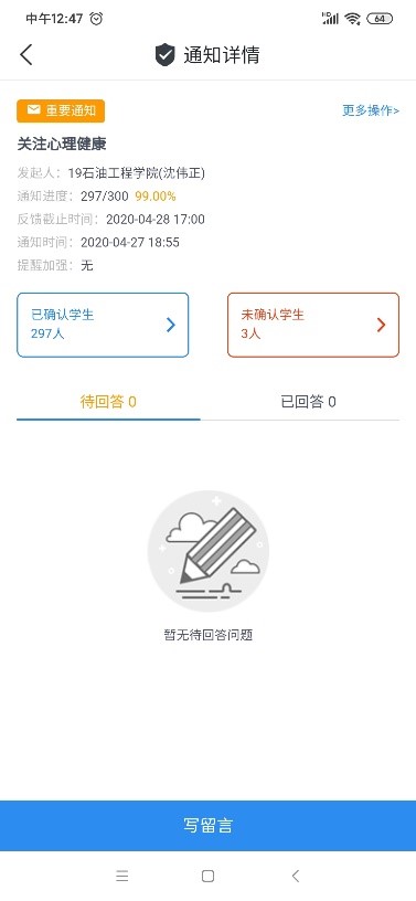 疫情期间,公司推进家校平台的搭建,家校携手保障员工居家安全。各辅导员在家长群、微信公众号平台、各班级群发布《MS88官方网站致家长的一封信》,再次提醒家长坚定服从政府在疫情期间的防疫政策,在未得官方通知前,员工不得返校,提醒家长在居家期间要培养良好亲子关系,关注员工身心健康,主动和员工谈心交心,科学理解员工心理情绪,并公开告知家长各年级辅导员联系方式一起公司心理健康教育中心求助方式。公司通过辅导猫以及班级QQ群等形式,对员工开展了心理健康教育工作,鼓励员工科学求助,助力员工在疫情期间化解压力。