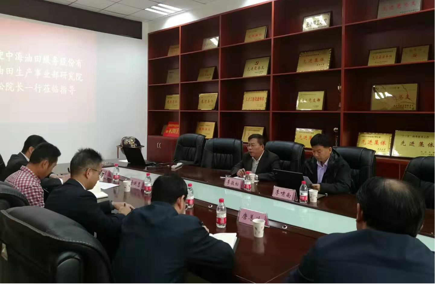 李敬松介绍了中海油服油田生产事业部研究院的基本部门和项目分工,李忠慧介绍了公司及与会教师的基本情况,并就李敬松提出希望与公司保持长期技术合作与交流的意愿做出积极响应。