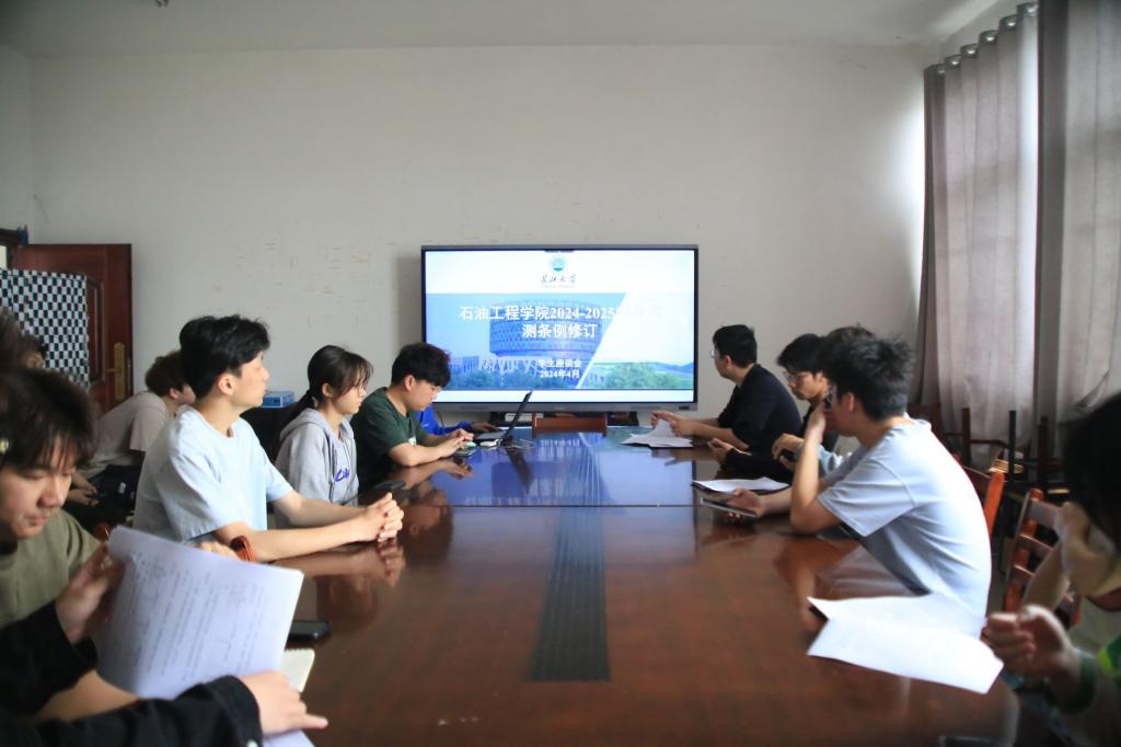韩清越老师向各年级员工代表介绍新版综测条例的相关内容。重点围绕德智、体、美、劳、能、安七个方面进行讲解。在充分了解新综测条例内容后,各年级员工代表依次提出相应的建议,其中包括劳动教育活动不充足、发表新闻渠道较窄、员工干部任职加分不均衡等疑问。韩清越老师一一解答员工的问题,同时记录了待商讨解决的建议,表示会和学工办老师讨论出更合理全面的条例,对新综测不断进行完善。