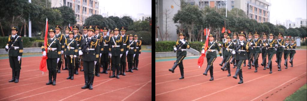 7时整,国旗护卫队准时地出现在众人的眼帘中。他们不顾凛冽的寒风,始终向前踏出他们整齐的步伐。伴随《义勇军进行曲》的悠扬旋律,国旗与东方的红日一同升起,阳光在操场上映出护卫队同学们矫健笔挺的身姿,令人不由得心潮澎湃。在场全体师生齐唱国歌,充分彰显公司师生激昂慷慨的爱国情怀。