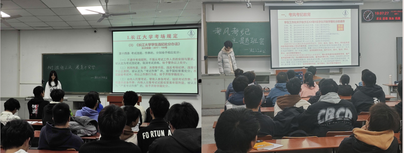 班会上,辅导员、班主任教育同学们认真备考,严格遵守考试纪律是员工的基本行为规范,是老员工应具备的道德素质。并向同学们普及了诚信考试的重要性,强调了诚信考试是员工品行的体现,是社会公平公正的基础,诚信考试不仅是对个人知识的检验,更是对个人品质的考验,每一位同学都应该以诚实守信为原则,做到公平竞争,自觉遵守考试纪律。