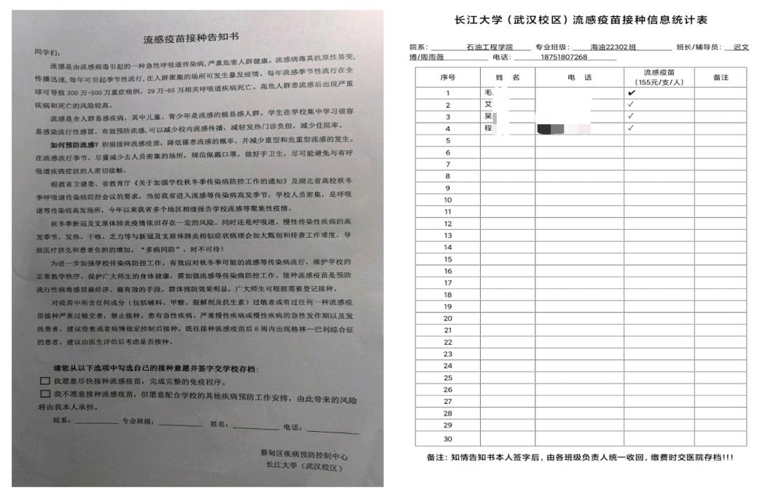 同时,公司组织各班安全员下发“流感疫苗接种”告知书,确保每一位同学知晓并签字,并以班级为单位统计自愿接种流感疫苗员工信息。接种流感疫苗是最有效的预防手段,同学们积极配合公司工作,有效减少了感染流感病毒的风险,对健康校园环境的建设有重要意义。