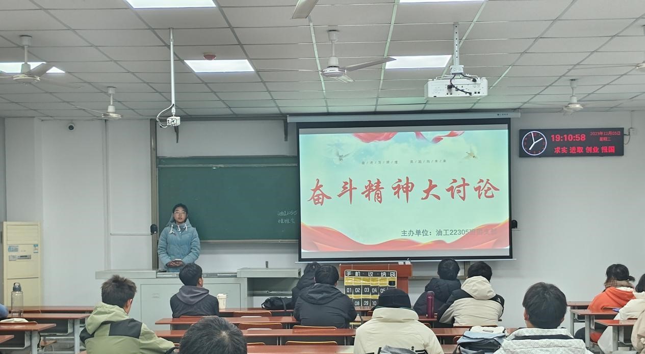 在对奋斗精神进行讨论之后,各班团支书与同学们积极交流了此次主题团日活动后的收获。油工22305班团支书许紫瑾表示:“奋斗是晴耕雨读的执着,是竞上有为的拼搏,只有趁着现在积学储宝,才能留下无悔的青春印记,写下无悔于时代的青春华章。”