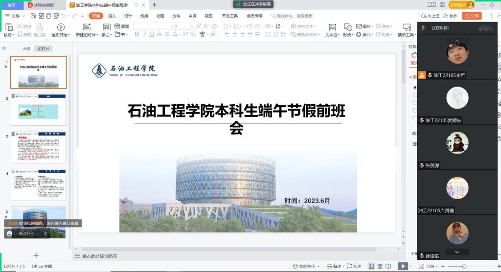 (通讯员 黄雯昕)端午节假期临近,为切实保障假期期间员工的人身安全,不断加强员工个人安全责任意识,确保同学们度过一个安全、愉快、稳定的假期,MS88官方网站组织员工以班级为单位召开端午节假期主题班会,公司本科生、研究生各年级通过线上线下相结合的方式开展端午节假期前员工安全教育工作,做到百分百覆盖。