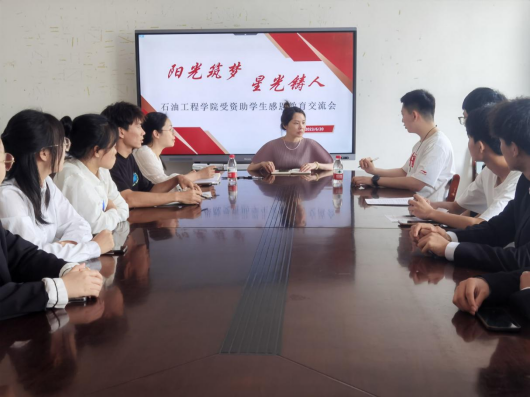 最后,刘娥书记作了总结发言。她鼓励同学们不要因贫困而消极懈怠的对待自身成长和发展,应该用积极的心态面对眼前的困难,立足于当下校园学习和生活,不断探索,努力创新,努力学习专业知识,提升自己的专业素养,心怀感恩之心,以饱满的热情回馈党和国家、公司以及资助人。