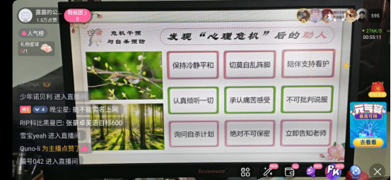 为进一步提高公司员工的心理素质和心理健康水平,掌握危机干预和自杀预防的工作技巧,6月16日下午,公司在哔哩哔哩直播平台开展了主题为“危机干预与自杀预防”的员工干部心理健康知识培训,公司心理专干朱小露老师主讲。