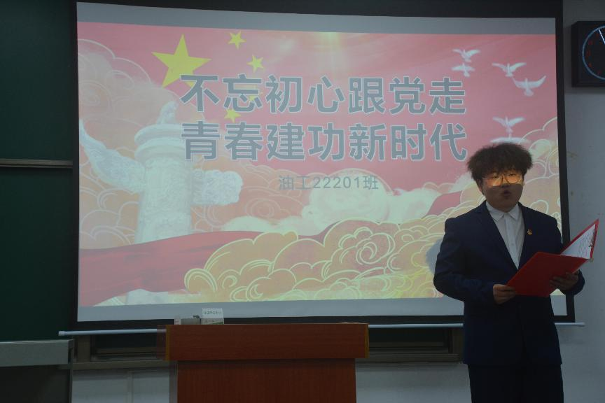 本次活动以“理论学习我来讲——学习二十大 永远跟党走 奋进新征程”为主题,活动分为主题讲演和“一点通”展示两大环节,通过挖掘身边模范主讲人,用自身成长经历讲好对党的认识,进而增强吾辈青年思想认同、情感认同、实践认同。最终油工22201班李明昊同学和油工22205班顾小青同学获评优秀主讲人。