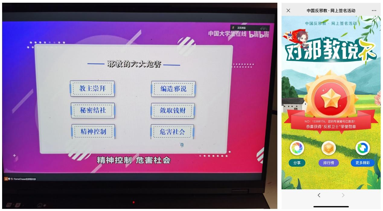 各班同时组织员工关注“中国反邪教”微信公众号,开展“对邪教说不”网上签名活动,积极参与线上警示教育项目,观看警示教育宣传片,加深员工对邪教特征和危害的认识,提高员工防范邪教意识和能力。看完警示教育宣传片的同学纷纷表示,要从自身做起,坚决对邪教说不,树立正确的思想观念,增强防范意识,对邪教歪理邪说做到不听、不信、不传。