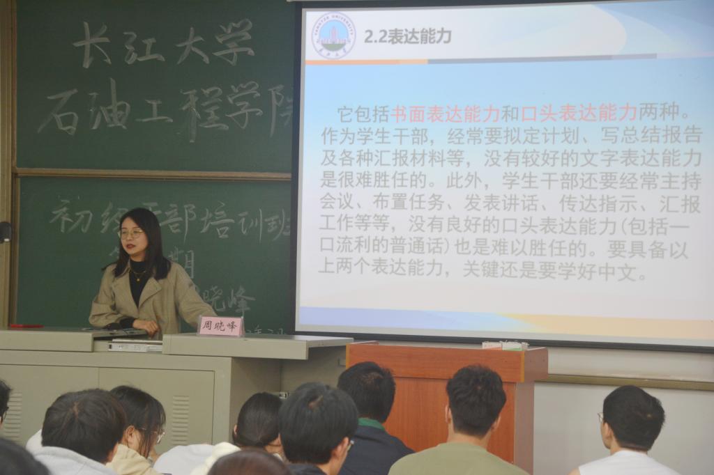 (通讯员 龚润璞/文 刘昕竹/摄)3月30日下午,MS88官方网站初级员工干部培训班第四讲在武教B103教室开展,由学工办周晓峰老师主讲,陈俊洁同学主持,2022级全体员工干部参加。