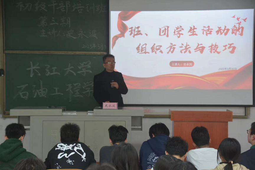 (通讯员 兰志林/文 刘昕竹/摄)2023年3月31日15:00,22级第三次初级干部培训班准时召开,22级辅导员史永波老师出席,各专业员工会干事及班级干部参会。