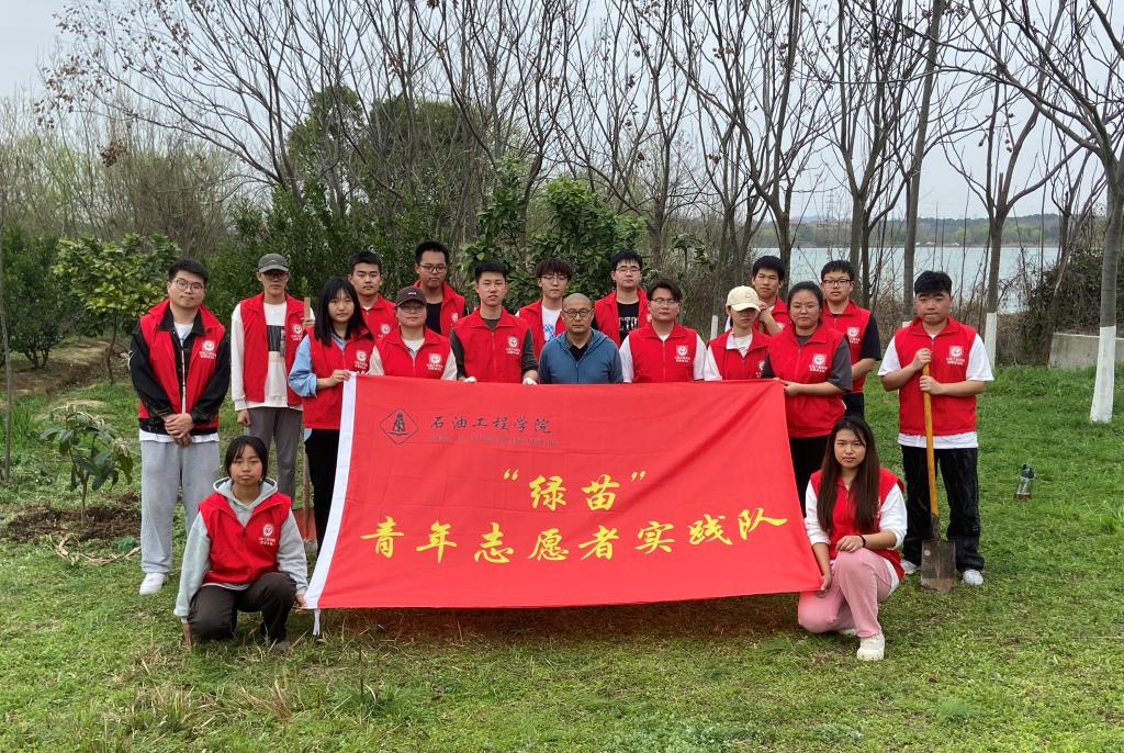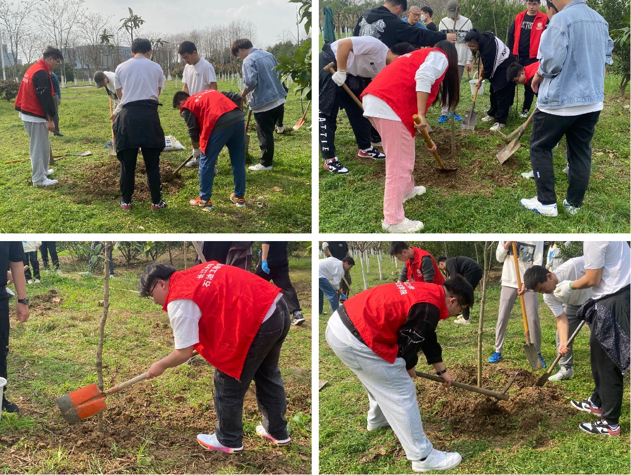 “绿苗”实践队成员们提前到达现场并联系好工作人员,为同学们准备好必要的植树工具。同学们四至五人为一小组,认真地挖坑、栽苗、培土、浇水,并和自己所栽种的树苗合影,现场气氛十分活跃,处处洋溢着希望的气息。