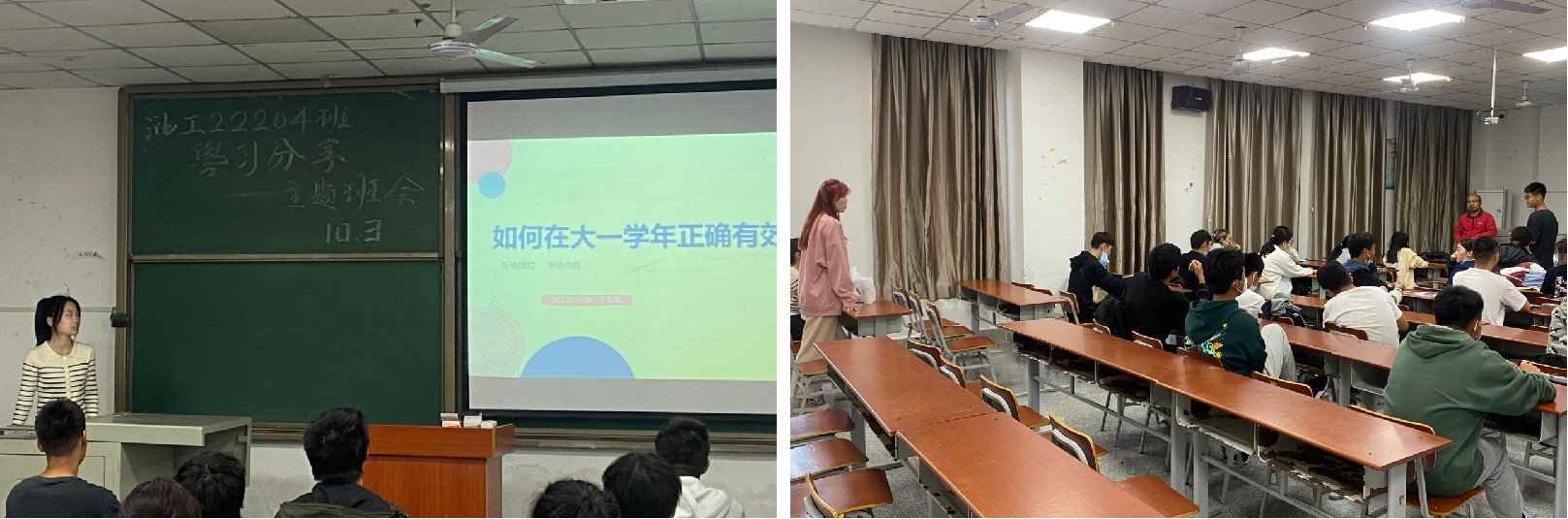在班会上,王雪瑶学姐和沈奥学姐就如何培养良好学习习惯和养成自主学习能力,给出以下建议:一是将学习与生活独立,做到对应的时间做对应的事;二是要学会独立思考,明确自己的学习目标;三是应保持积极乐观的学习心态,拒绝内耗和焦虑。四是要拒绝形式感,要做到真正用心学习,勿用“战术上的勤奋”掩盖“战略上的懒惰”;五是要保证充足睡眠,保持充沛精力,确保学习的高效性;六是要认清并接纳自己,对自身缺点有良好认知,不过分在意他人看法。