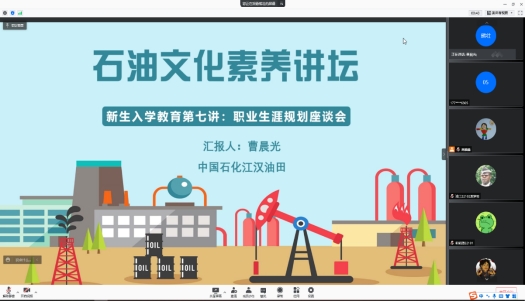(通讯员 李孟云)为培养2021级新生的生涯规划意识,帮助员工明晰职业定位、促进学习热情、增强行业信心以及充实老员工活,11月29日,公司邀请到了2011级员工曹晨光为公司新生开展线上职业生涯规划专题讲座,参加本次讲座的有辅导员商麟鑫、史永波,全体2021级员工以及高年级优秀员工代表。