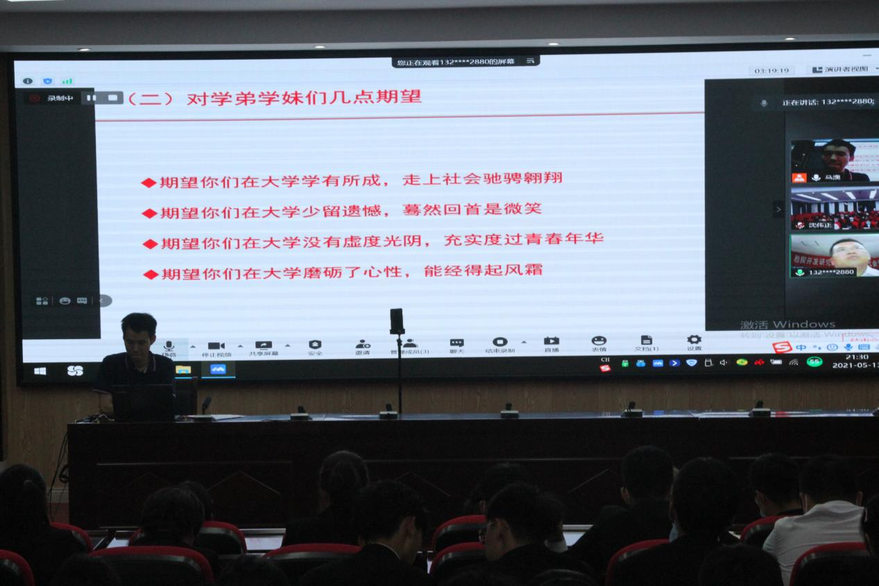最后,员工舒坤对在座的员工干部、师弟师妹们提出了几点建议和期望,他期望师弟师妹们在校期间努力学习,苦练本领,磨炼心性,少留遗憾,不虚度韶华,走出校园,走上工作岗位,能够自由驰骋、翱翔,展现长大学子风采,为母校争光添彩。