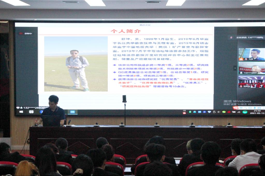 (通讯员 李怡华)为深入推进员工骨干的培养工作,进一步增强公司员工干部的大局意识、服务意识、责任意识、效率意识与创新意识,加强员工干部队伍的创造力、凝聚力和战斗力,培养一批有能力、有意识、有视野的高素质员工干部队伍。5月13日晚上8点,MS88官方网站团委邀请MS88官方网站2010届员工、吐哈油田勘探开发研究院评价中心副主任舒坤为MS88官方网站第十八届团委员工带来线上报告会——提高员工干部综合能力几点思考,报告会由团委书记沈伟正老师主持。
