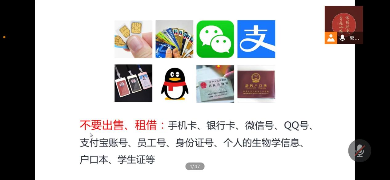 (通讯员 刘建威)针对目前高校网络电信诈骗案件频发的现状,为增强员工自我防范意识,进一步提高识骗防骗能力,切实维护校园安全稳定,公司积极响应校区组织开展的“无诈院系”“无诈班级”创建活动。近期公司学工办联合蔡甸街派出所通过线上线下的方式向全院本科生及研究生开展“无诈院系”“无诈班级”创建活动动员。